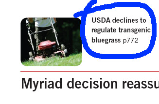 But won’t science tell us if this GM bluegrass poses health or environmental problems?   That’s the chilling part.  Consider the article on patents.